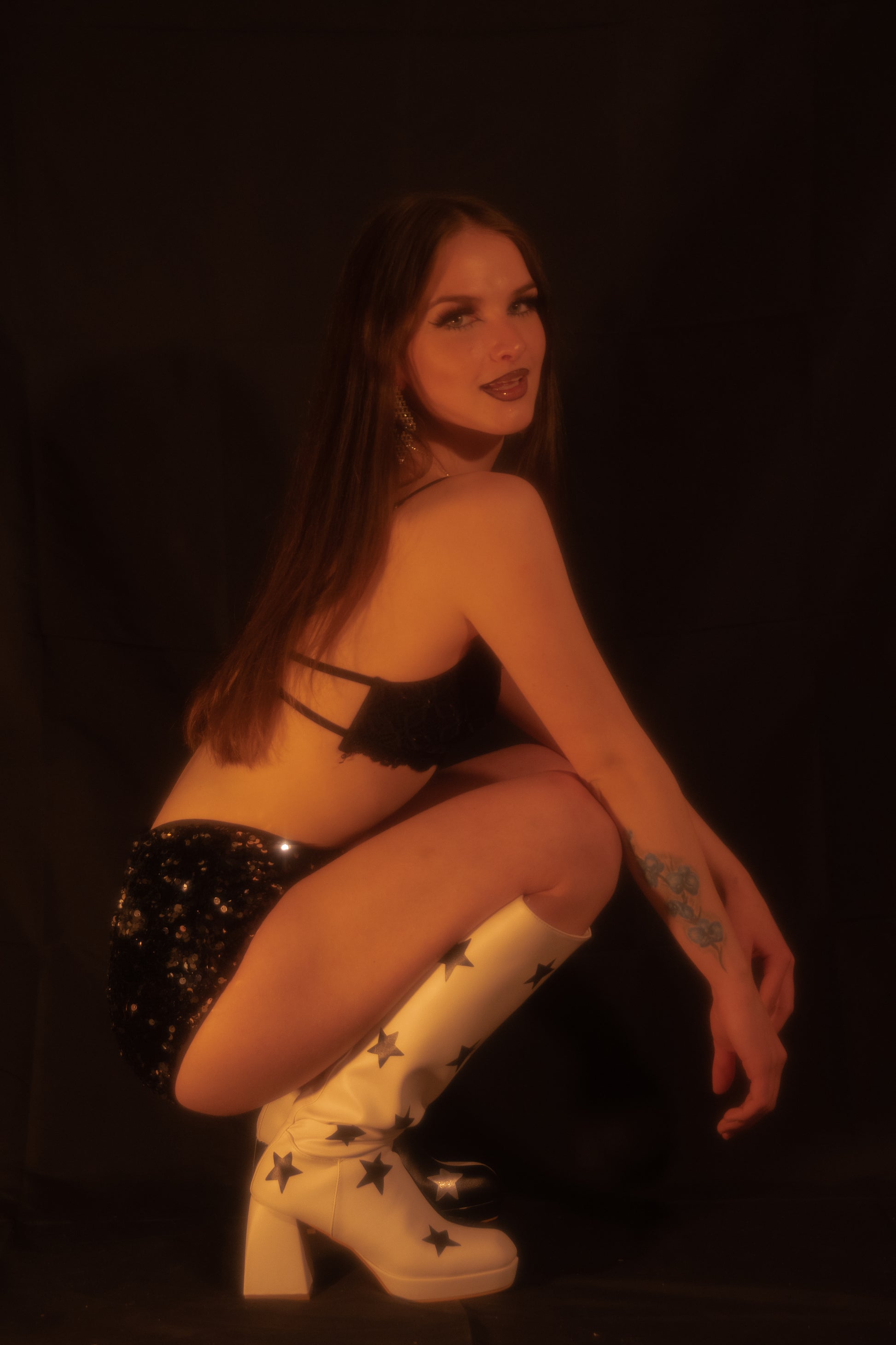 A dynamic go go boot design, using a midnight palette. My jet black and sliver paint making this moment really come to life! Something for the darker aesthetic angels out there.