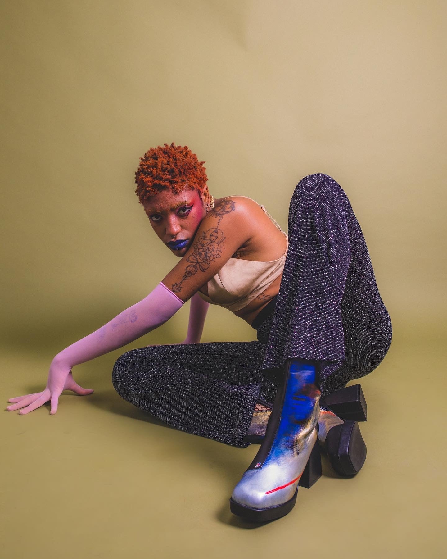 Jet black, groovy heeled ankle boots hand painted with sliver, gold, sapphire blue and fire red. An abstract, statement moment for your most expressive outfits